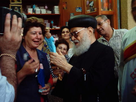 ووسط حيرة الحشود البشرية أسرعت فريدة الزمر نحو الأنبا ميخائيل وأمسكت يده